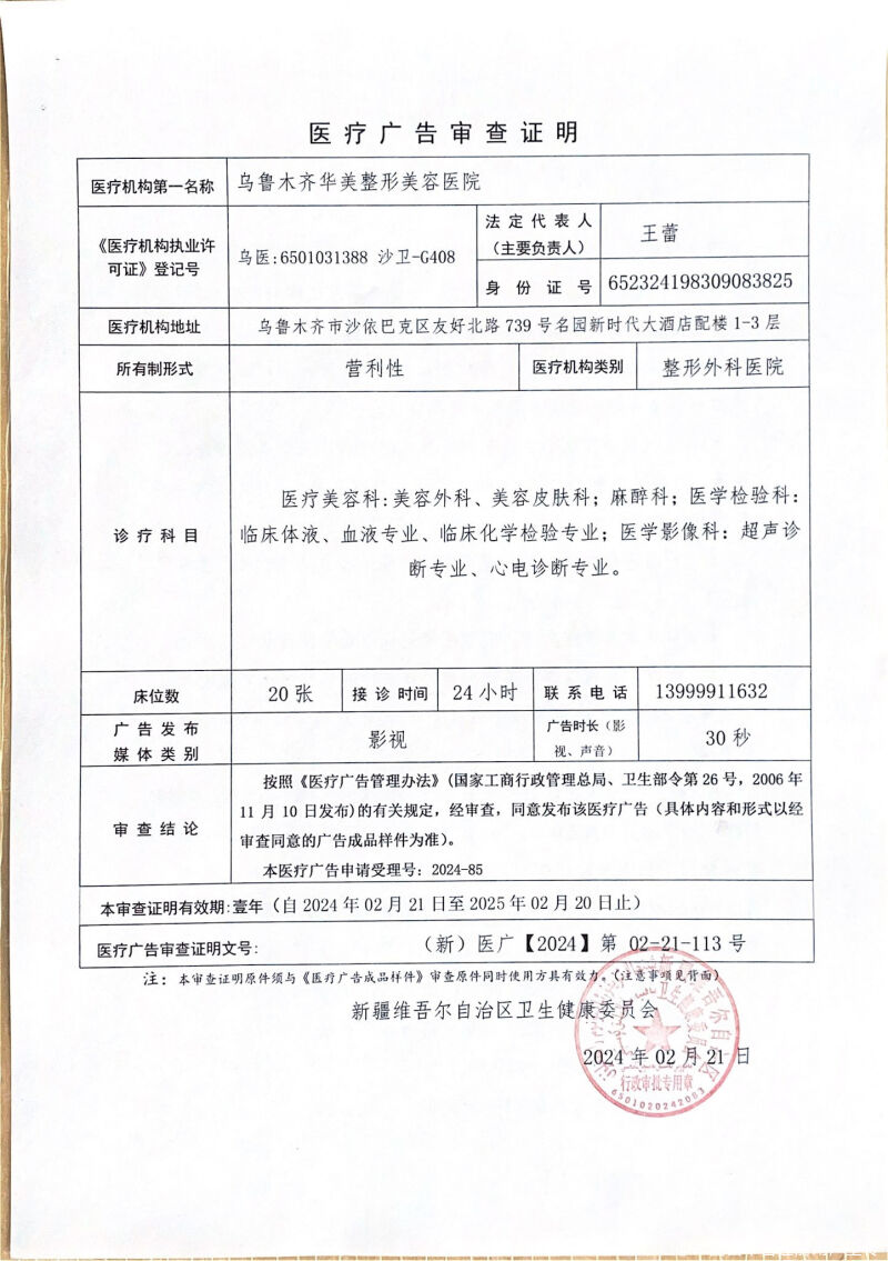 機構(gòu)名稱:新疆華美整形美容醫(yī)院