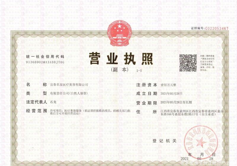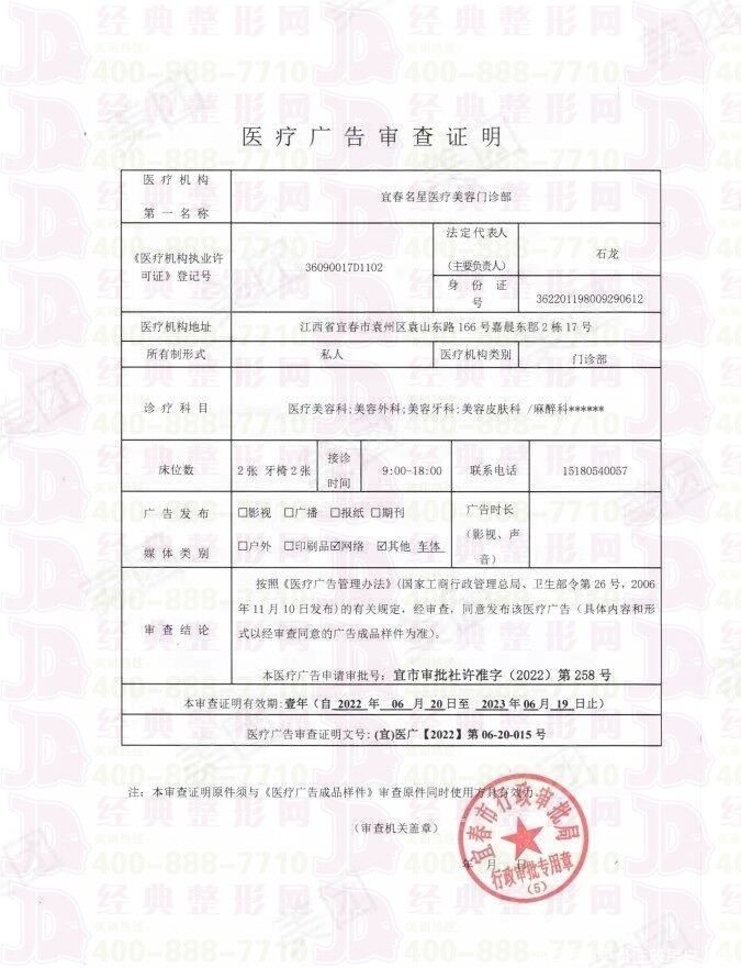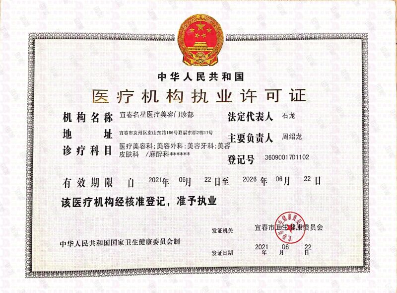 企業(yè)名稱:宜春名星醫(yī)療美容門診部