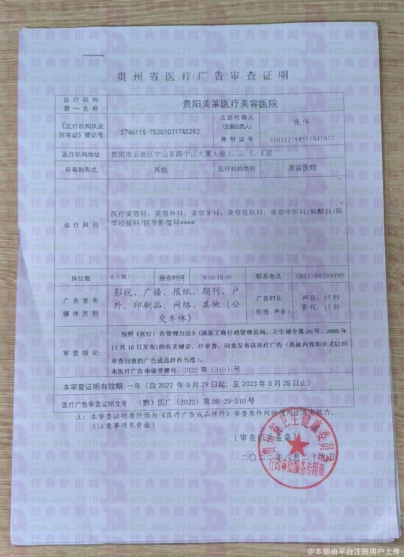 企業(yè)名稱:貴陽美萊醫(yī)療美容醫(yī)院