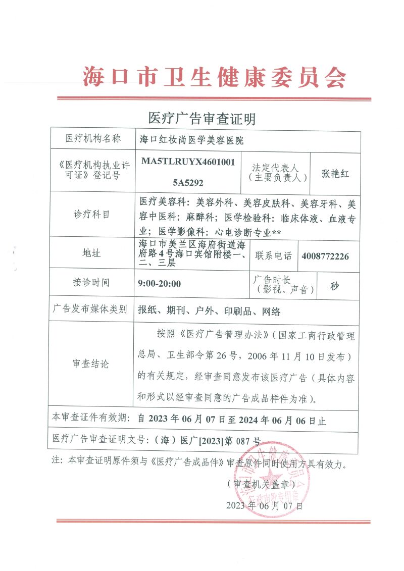 機構(gòu)名稱:海口紅妝尚醫(yī)療美容醫(yī)院