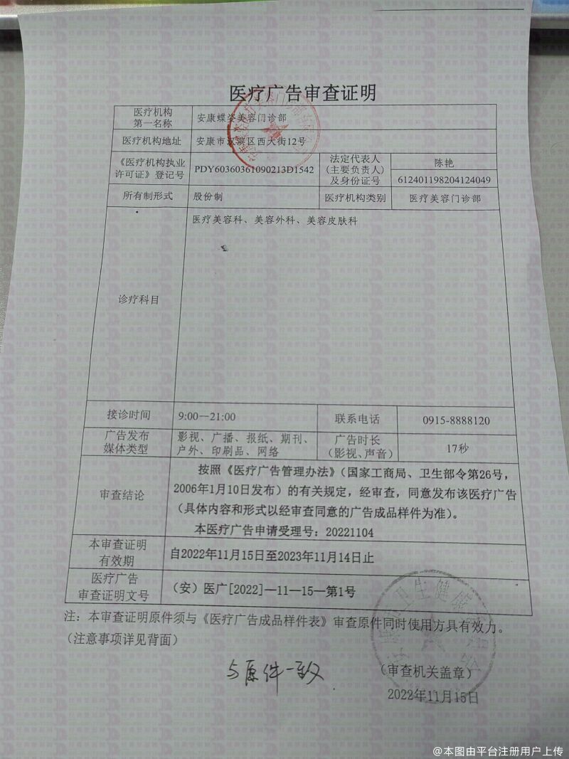 機構名稱:安康蝶姿醫療美容門診部